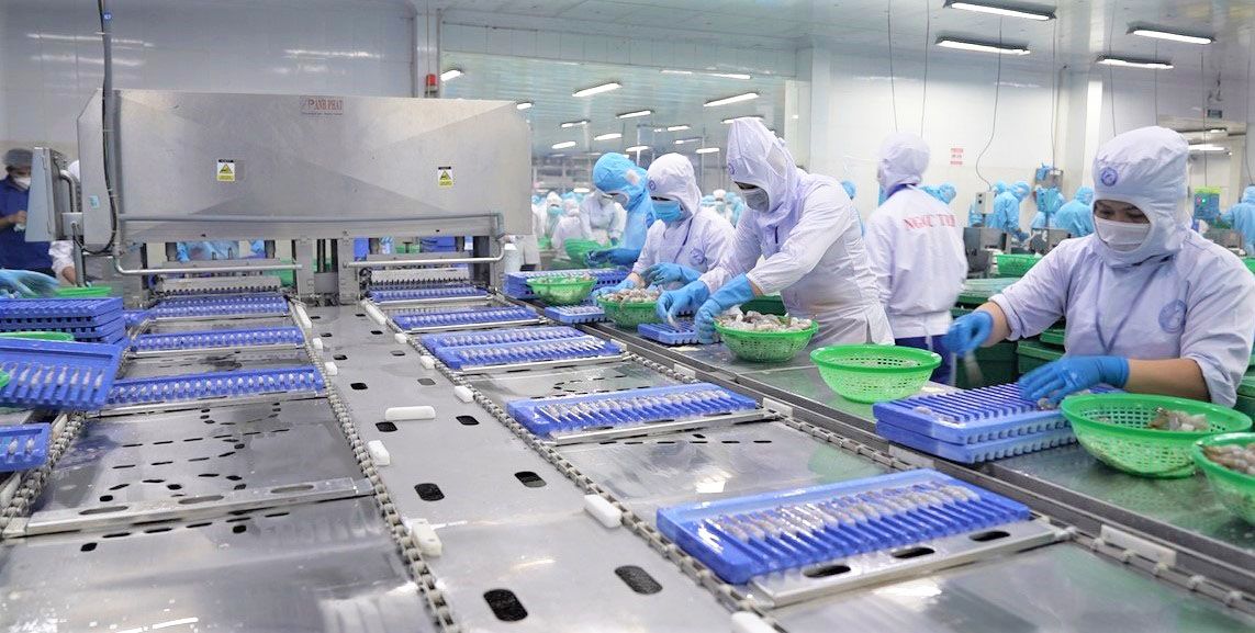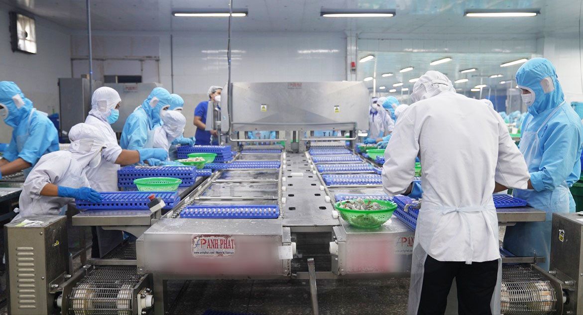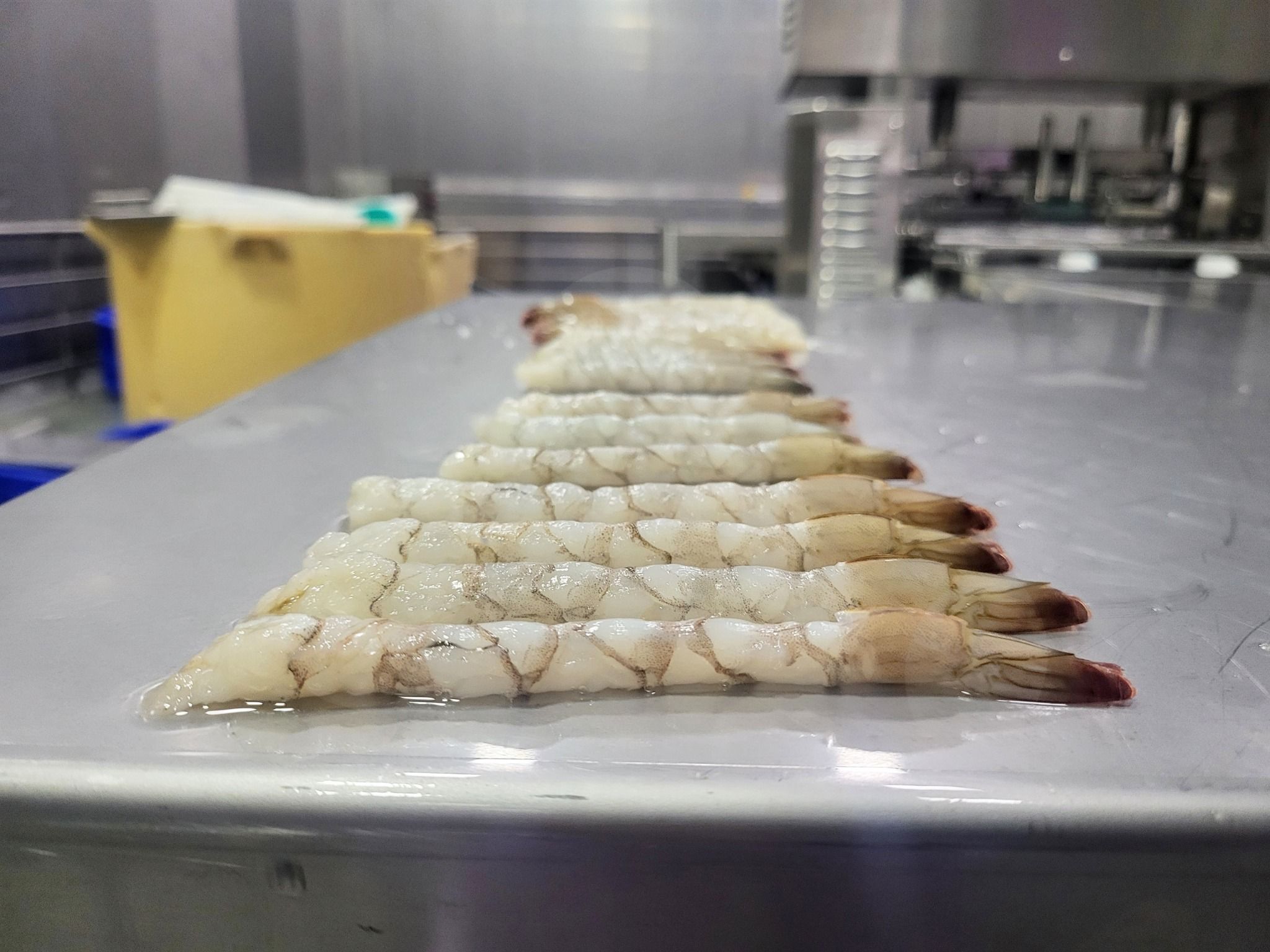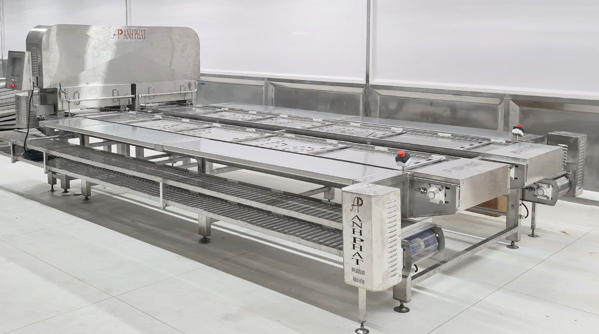 - Tôm được ép tự động trong dây chuyền ép, không bị gãy tôm trong quá trình ép.